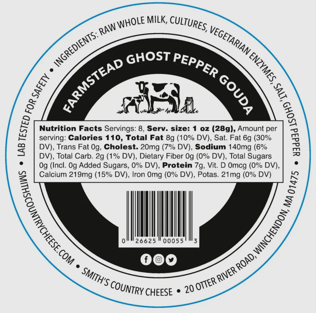 - Ingredients: Raw whole cow's milk, cultures, vegetarian enzymes, salt, ghost peppers, garlic